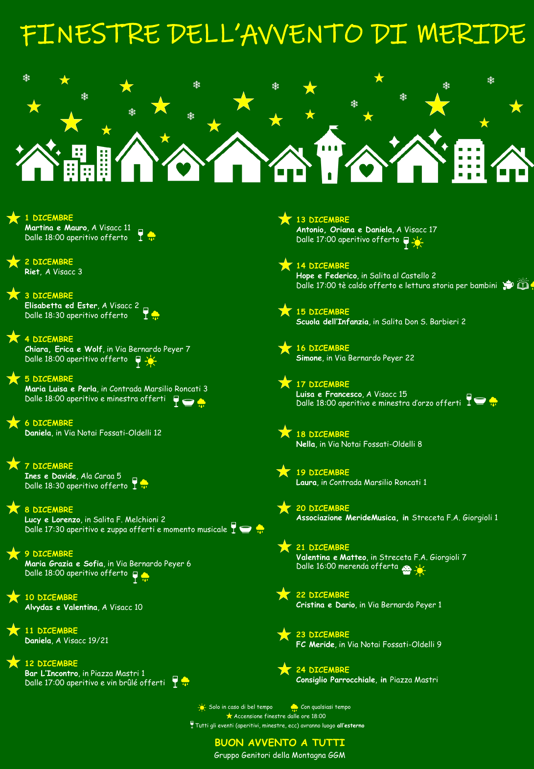 Finestre dell’avvento di Meride opc216 10 Dicembre 2025 Info parrocchia La finestra dell’avvento del 24 dicembre 2025 avverrà presso il Museo d’Arte Sacra in Piazza Mastri di Meride Scarica il calendario 2025 (PDF) Calendario “Finestre dell’avvento” di Meride
